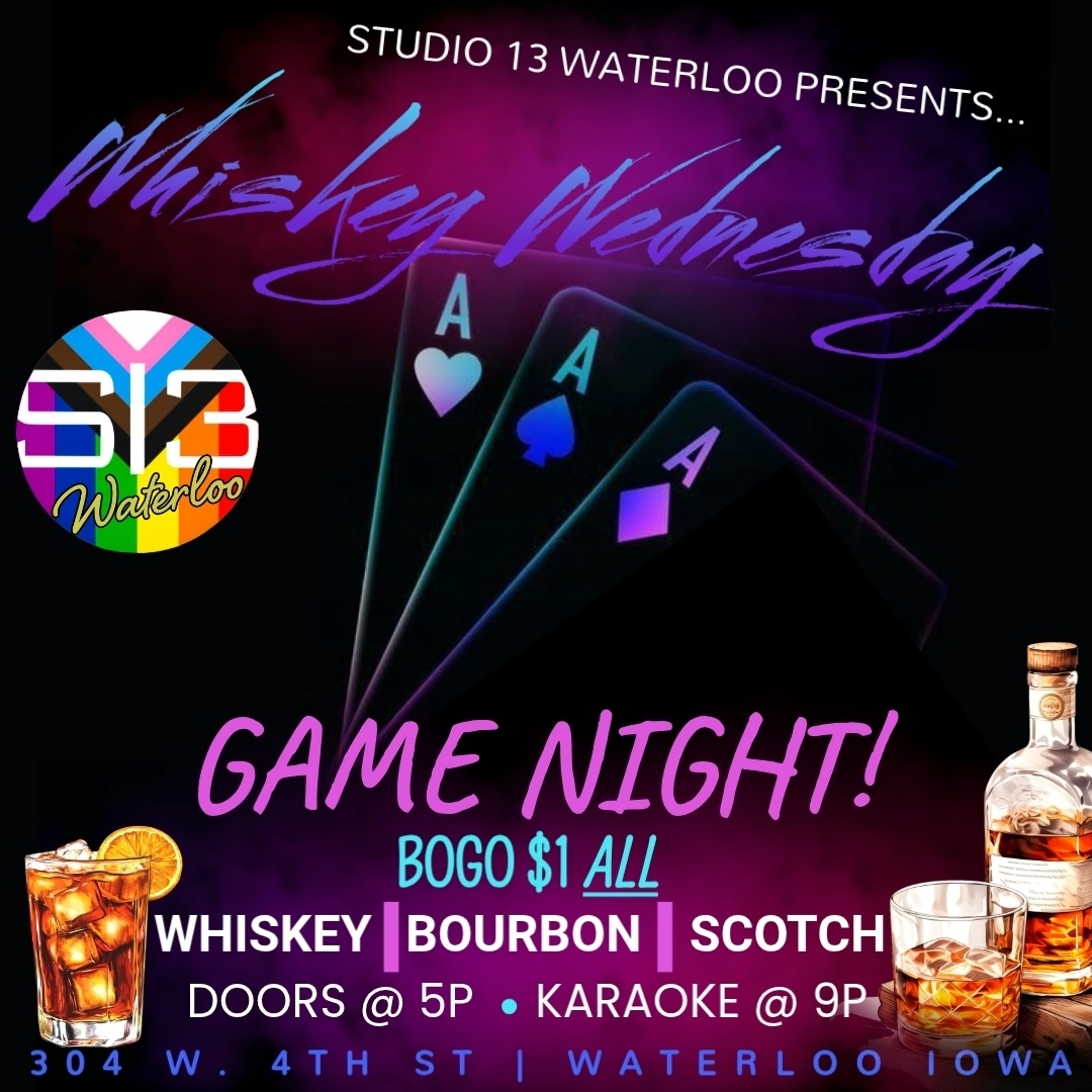 No Cover Whiskey Wednesday. Game Night 7PM–10PM.